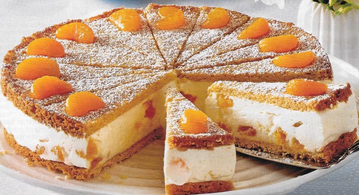 Nun die Gelatine einweichen, die Mandarin Orangen abtropfen und den Saft auffangen. Die Sahne steif schlagen und kühlen. Den Quark, den Zitrussaft und 75 g Zucker verrühren. Die Gelatine ausdrücken und mit 3 EL des Mandarinensafts auflösen, mit 1 – 2 EL Creme verrühren und in Rest Creme rühren. Zunächst die Eiweiße steif schlagen. Erst die Sahne und dann den Eischnee unter die Creme heben. Die Mandarinen, bis auf 16 unterheben. Den ganzen Boden in die Springform legen, den Formrand schließen, die Creme auf den Boden streichen und mit den Tortenstücken belegen. Die Torte etwa 4 Stunden kühlen, mit Puderzucker bestäuben und mit Rest Mandarinen verzieren.